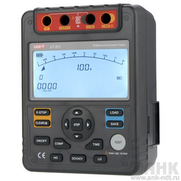 - Испытательное напряжение: 100 В/ 250 В/ 500 В/ 1000 В