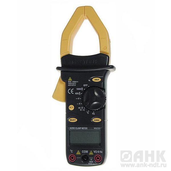 Токоизмерительные клещи MS2101 позволяют производить измерения бесконтактным способом силы тока в электрической цепи, а так же с помощью щупов измерять величину напряжения, сопротивления, ёмкости, частоту и относительную скважность сигнала и температуру окружающей среды.