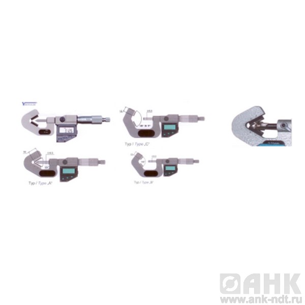 По конструкции, под чем подразумевается форма скобы для микропары или корпуса и форма поверхностей измерения, и назначению можно выделить несколько типов микрометров: