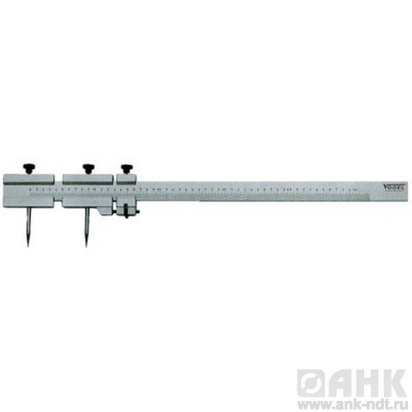 Штангенциркули Vogel разметочные, диапазон от 70 - 500 мм до 70 - 3000 мм , со сменными колками, предназначены для измерения и разметки размеров – внешних и внутренних. Конструкция прибора довольно проста: представлена двумя измерительными поверхностями: базовой, соединенной со штангой-линейкой, и дополнительной, сопряженной с рамкой, которая движется по линейке, между которыми выставляется размер. На линейке имеются деления, а на рамке – установленный или выгравированный нониус.