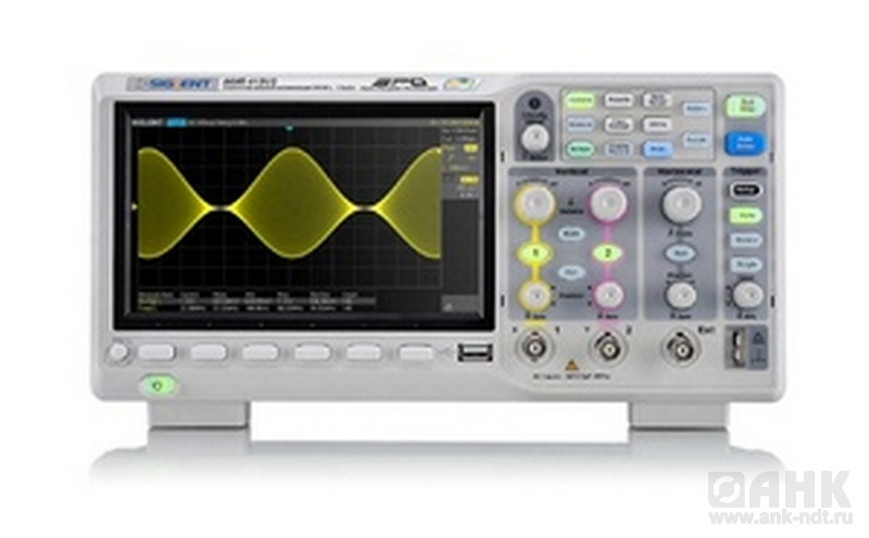 Осциллограф цифровой, 2 канала, полоса пропускания 200 МГц, макс. частота дискретизации 1 ГГц, память 7 МБ на канал (14 МБ - при объединении каналов.), скорость обновления до 400000 осциллограмм в секунду. Коэффициент отклонения от 500 мкВ/дел, авто- и курсорные измерения 38 параметров, расширенная синхронизация (фронт, скорость нарастания, длительность, ТВ, рант, логический шаблон), вход внешней синхронизации, математика (слож., вычит., умнож., дел., d/ dt, ?dt, ?), БПФ (память 1M), сегментированная память (до 80000 сегментов); режим HISTORY – запись/воспроизв. осциллограмм до 80000 кадров. Cинхронизация и декодирование сигналов I2C, SPI, UART/RS232, CAN, LIN. Цветной ЖК-дисплей с диаг. 17,8 см (8 х 14 дел; 800×480 точек), интерфейсы USB (сохранение данных/ ДУ), LAN. Масса и габариты: 2,5 кг, 312х134х150 мм.