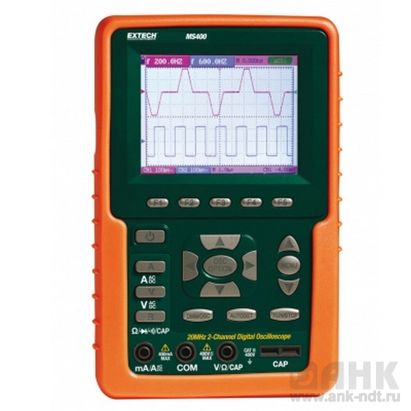 Двухканальный цифровой осциллограф Extech MS420 с полосой пропускания 20 МГц. Чувствительность по амплитуде: от 5 мВ до 5 В/дел. Диапазон временной развертки: от 5 н/с до 5 с/дел. Возможность легкого наблюдения сигналов сложной формы. Режимы усреднения значений для сглаживания формы сигнала и сохранения показаний для наблюдения динамики сигналов. Расчет формы волны: функции сложения, вычитания, умножения или деления. Функция сохранения и отображения на дисплее до 4 форм сигнала. Цветной ЖК дисплей 97 мм. Интерфейс: USB